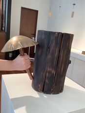 真鍮と銅のドアハンドル。きのこの画鋲は壁に刺すと本物が生えてきたように見えますがものを引っかける能力はありませんでした。こちらの巨大なきのこのドアハンドルは見た目のインパクトもありますが実用的に仕上がっています。柄の部分は抗菌作用がある銅を使用し昨今の衛生事情にも配慮しています。取り付けはM5のネジ2か所です。ドアに取り付ける場合は穴あけが必要ですのである程度の大工経験が必要です。