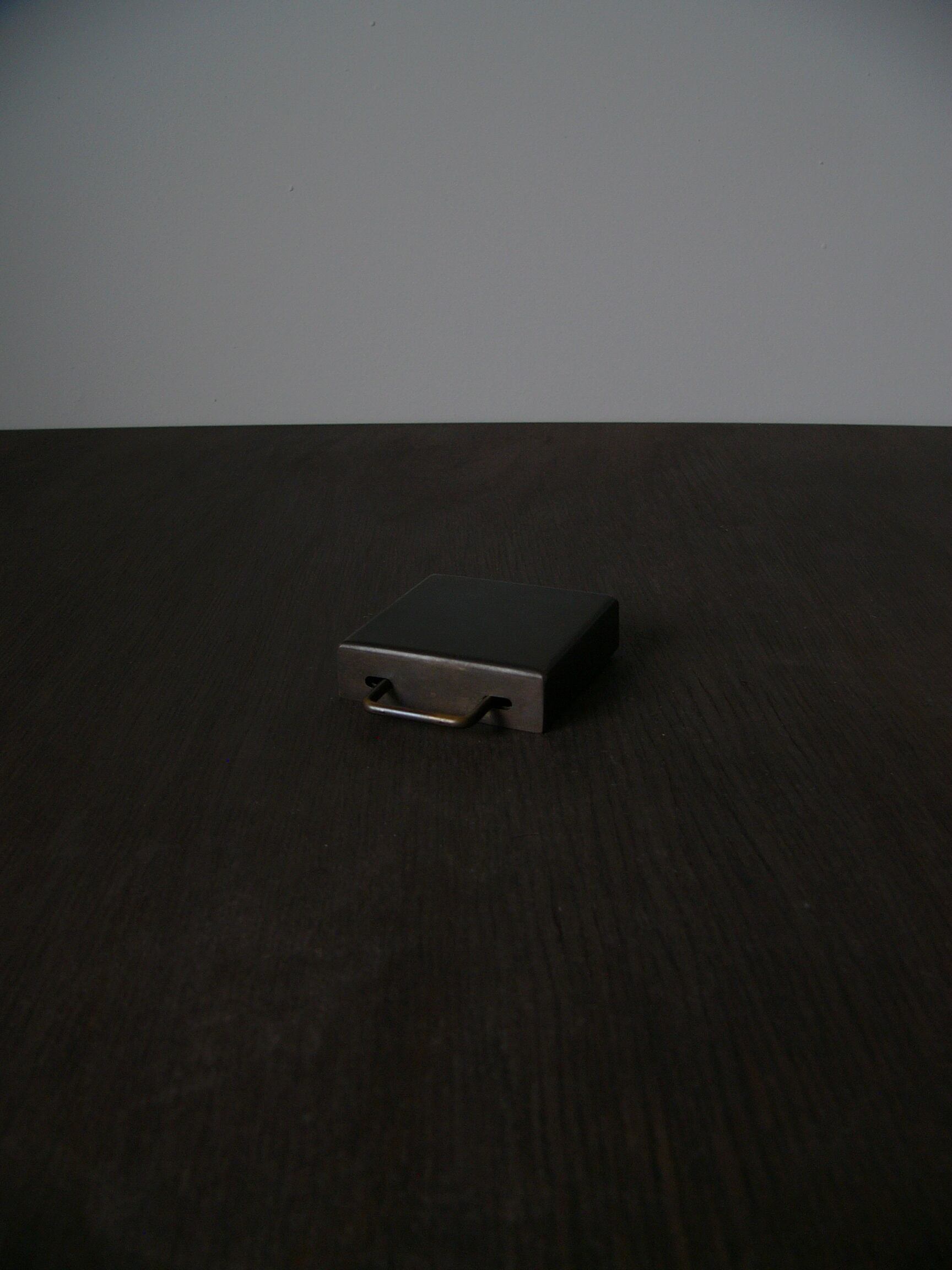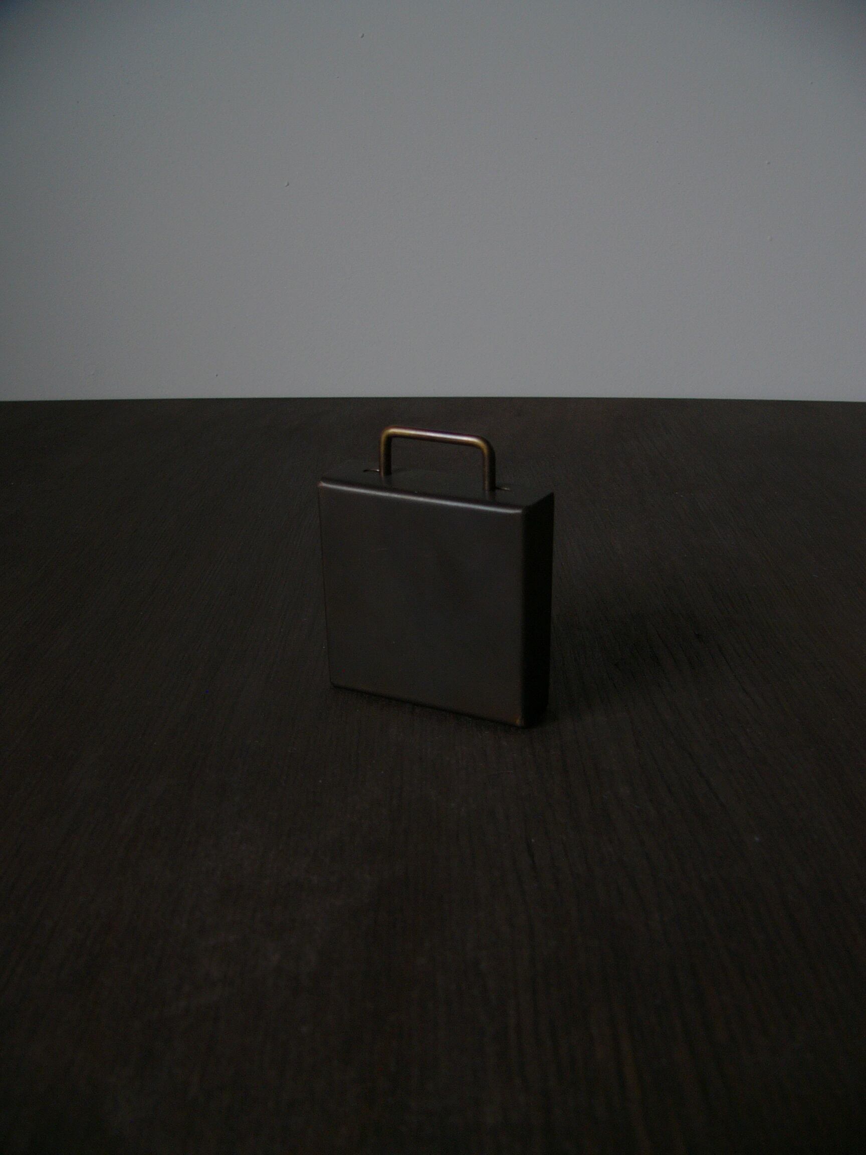鞄をモチーフにした箱。手順通りにしないとふたを開けることは出来ません。しかけ小箱シリーズは ”家” ”玉手箱” ”由々” ”鞄”と4種類ほど作りましたが、この鞄を説明なしに開けることができた人はいませんでした。この鞄と由々は名刺が丁度入るサイズで作っています。